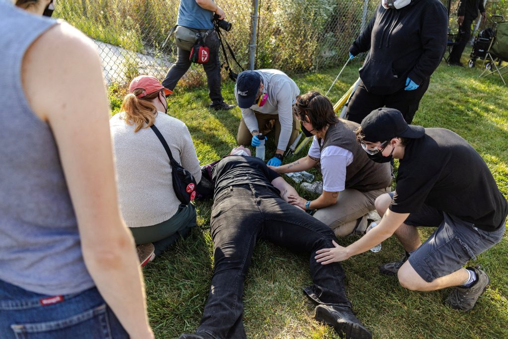Uma equipe de médicos voluntários lavou o gás lacrimogêneo de seu rosto, orientou-o a fazer uma pose de recuperação para ajudá-lo a respirar com mais facilidade e aconselhou-o sobre como manusear com segurança suas roupas contaminadas, disse ele.