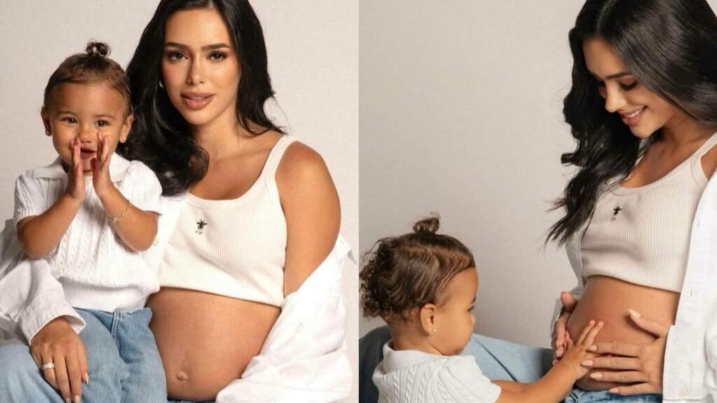 Bruna Biancardi encantou os seguidores ao compartilhar cliques de um ensaio fotográfico ao lado da filha, Mavie, fruto de seu relacionamento com Neymar Jr. Grávida de seis meses, a influenciadora posou exibindo a barriga e celebrando o momento especial em família.