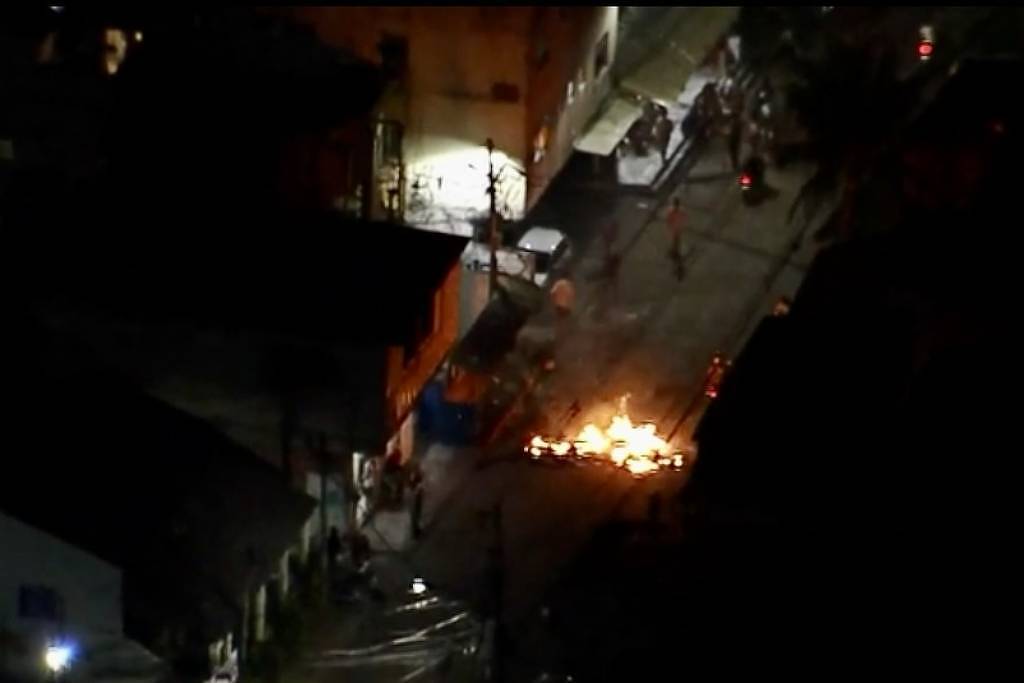 Barricadas em chamas também foram usadas em ruas internas das comunidades. Pouco depois das 20h, a empresa informou que os coletivos haviam sido retirados e a circulação normalizada.