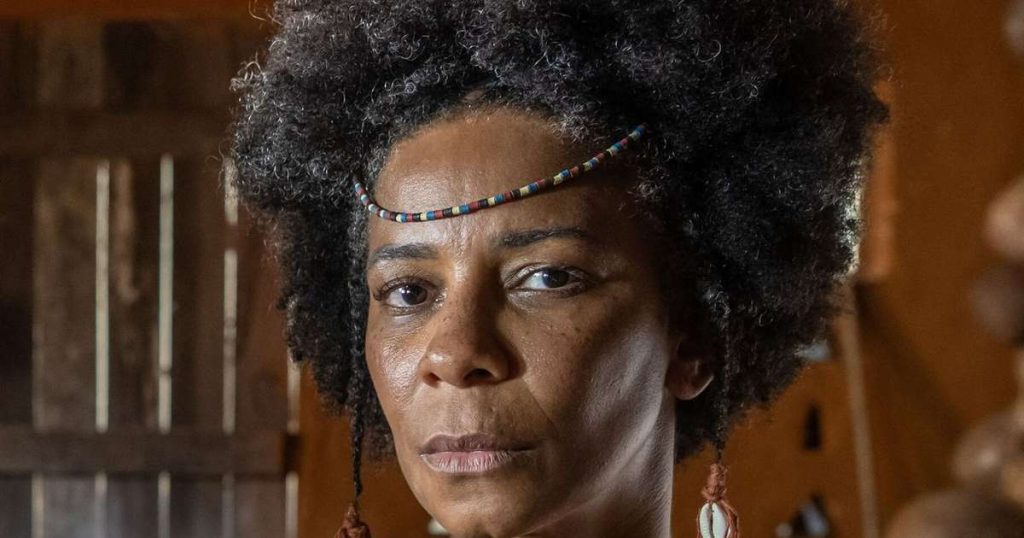 A partir dessa tragédia, ela passa por uma mudança profunda e decide assumir uma postura combativa, tornando-se uma guerreira africana determinada a enfrentar o poder de Jendal, personagem vivido por Lázaro Ramos.