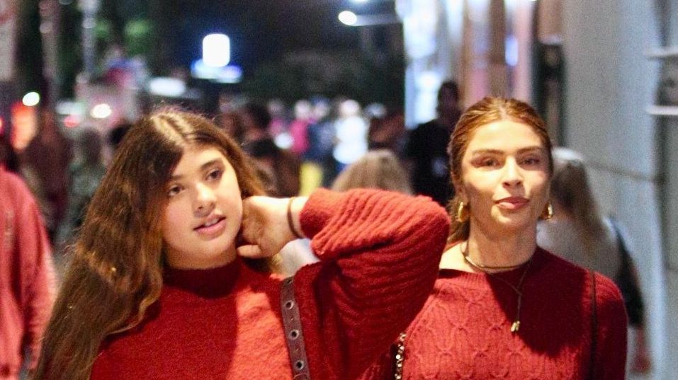 As duas combinaram seus looks para assistir à peça “Rita Lee, Uma Autobiografia Musical”, na noite deste domingo (13). Mãe e filha estavam usando suéteres vermelhos de lã e, enquanto Grazi escolheu uma calça jeans de corte largo, Sofia optou por uma minissaia preta.