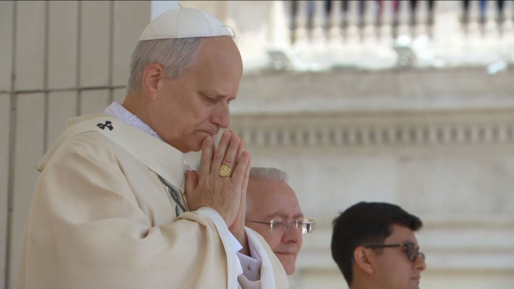 Leão XIV sugeriu que os fiéis poderiam pedir a Deus que “nos conceda paz e justiça e enxugue as lágrimas daqueles que sofrem por causa dos conflitos armados em curso”.