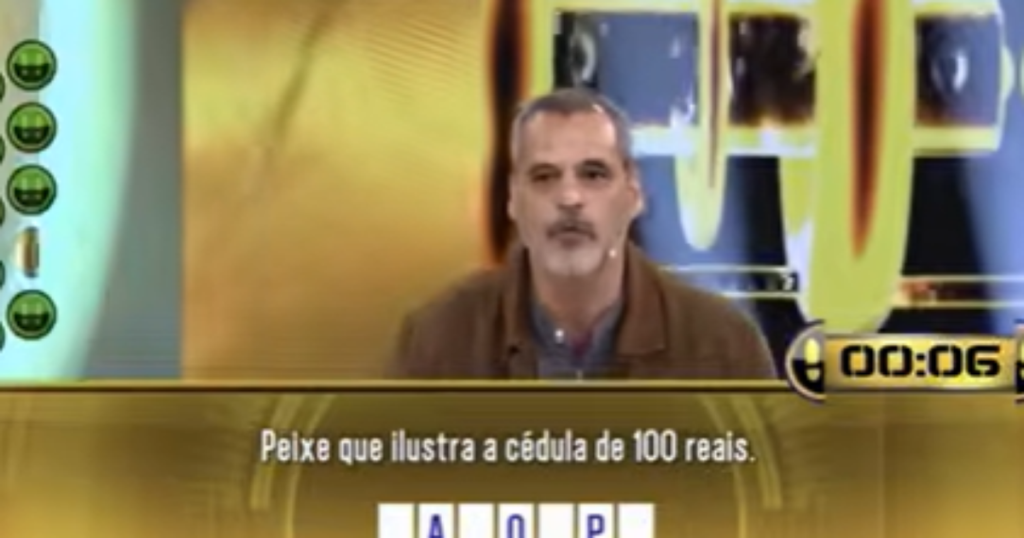 A última pergunta era dizer o nome do peixe que ilustra a cédula de R$ 100. Ele, no entanto, não soube responder a tempo, perdeu todo o valor e acabou deixando o programa de bolsos vazios. A resposta correta era “garoupa”.