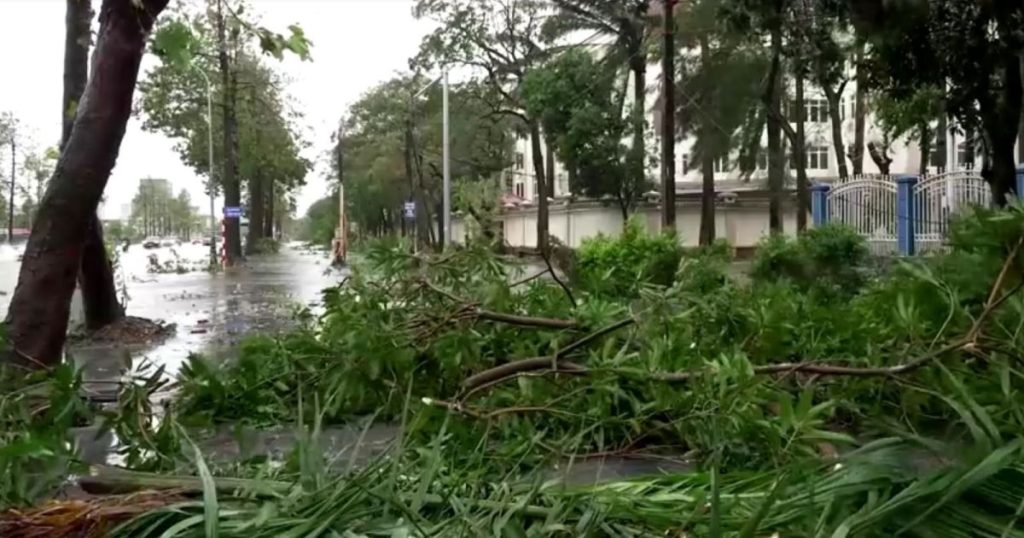 O ciclone provocou fortes chuvas na maior parte do Vietnã desde sábado (27), e as autoridades alertaram para o risco de graves inundações e deslizamentos de terra.