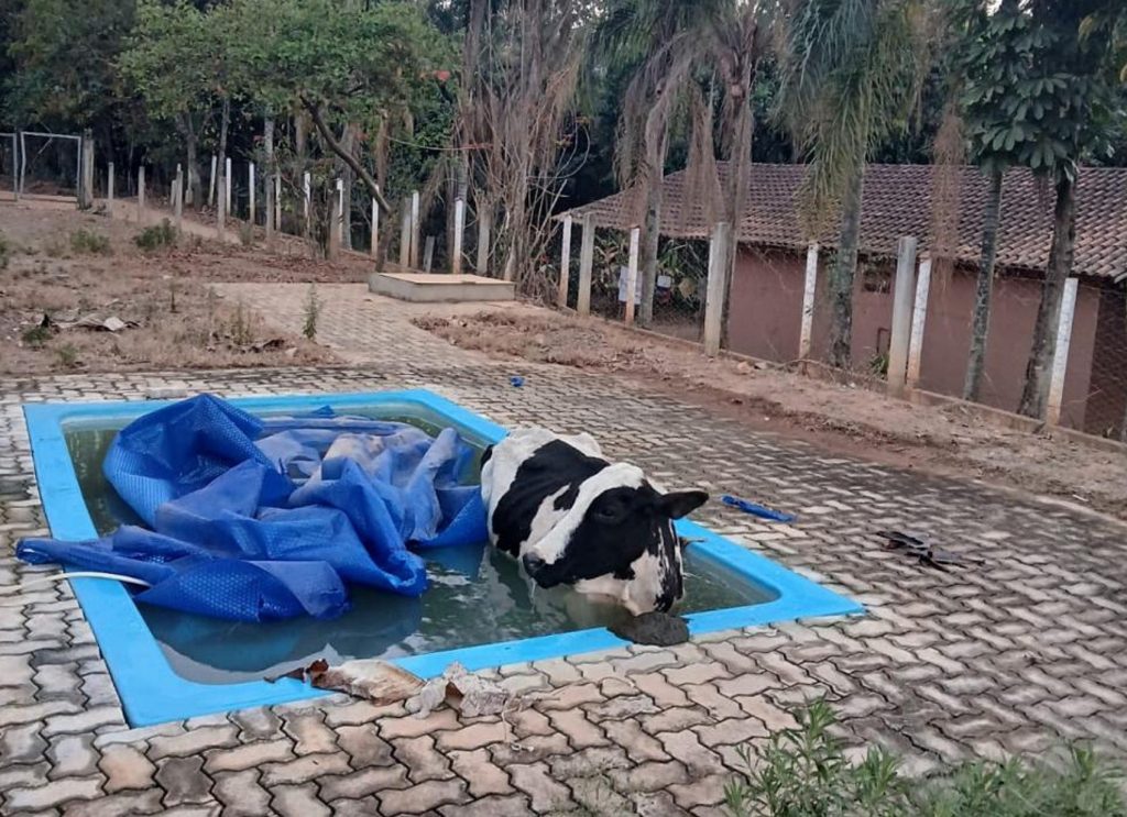 O Corpo de Bombeiros de Andradas (MG) foi acionado para um resgate diferente, na manhã deste domingo (14). Eles foram solicitados para retirar uma vaca que havia entrado na piscina de um sítio.